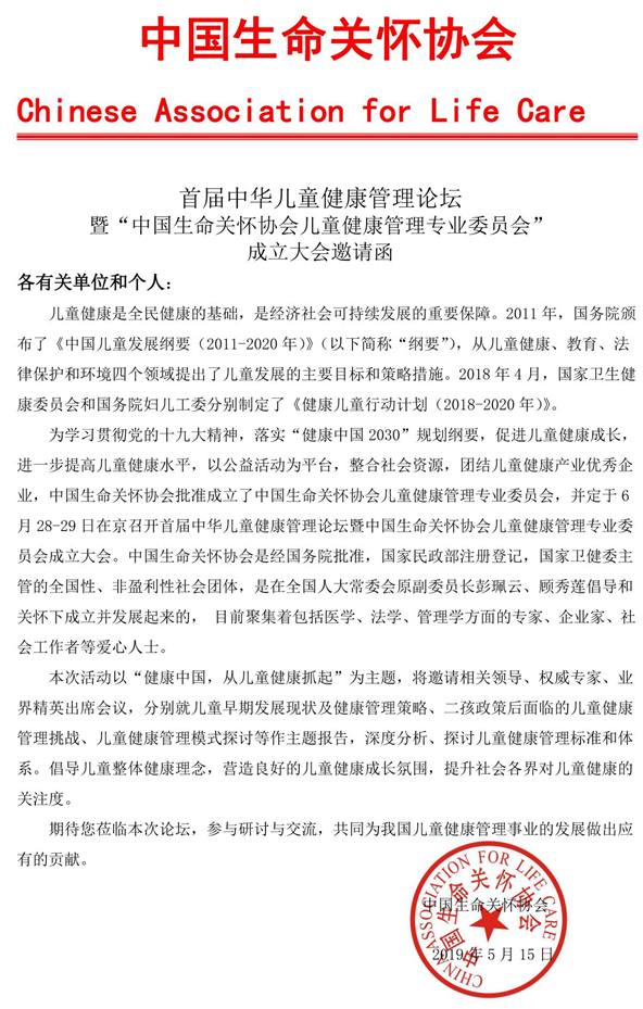 6.中国生命关怀协会儿童健康管理专业委员会发起单位、发起人、副主任委员、副秘书长、常务理事申请,参与者请在报名表注明,并索要申请表;