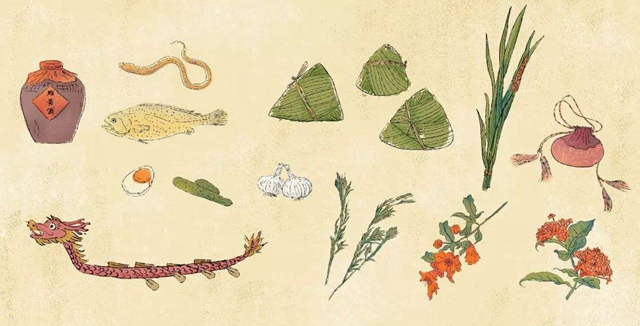 端午习俗活动围绕敬龙酬龙、祈福纳祥、压邪攘灾等形式展开,内容丰富多彩,全国各地因地域文化不同而又存在着习俗内容或细节上的差异。祈福纳祥类习俗主要有划龙舟与祭龙,压邪攘灾类习俗主要有挂艾草、浸龙舟水、洗草药水、拴五色彩线等,节庆食品主要有粽子、五黄等。
