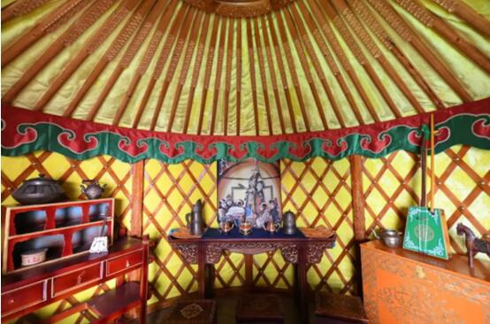 “家在蒙古”餐厅内,18个蒙古包错落有序如夜幕繁星,在这里,每一个蒙古包都有属于自己的故事,都折射着不同的时代精神。其中以“哈伦高娃”命名的蒙古包,用圣母“折箭教子”的故事向大家传递“团结协作”、“抱团取暖”的时代精神。