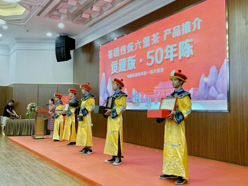 2019年6月21~24日,苍梧传统六堡茶跟从“嘉庆皇帝”以全新的形象高调亮相2019北京国际茶业展,并于6月22日上午,在北京展览馆12号馆活动厅举办了“苍梧传统六堡茶公用品牌发布会及品牌授权仪式”的“皇家”盛典活动。