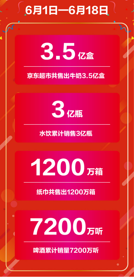 京东不愧为每年的618主场地,今年京东618光人力就投入了超过千万人之多,90%以上的品牌在这次京东618期间发布了数以百万计的新品。京东的终极战报显示,今年618期间,京东超市不仅共计售出牛奶3.5亿盒,还有3亿瓶水饮、7200万听啤酒!不得不感慨,还是京东的吃货朋友们给力!