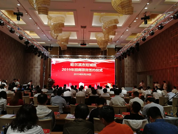 本网讯(高伟)6月28日上午,哈尔滨市双城区2019年招商引资项目签约仪式在哈尔滨敖麓古雅酒店举行。深圳宝能集团、深圳万科集团、上海韵达集团、北大荒集团等企业投资的7签约项目,投资总额100亿元。