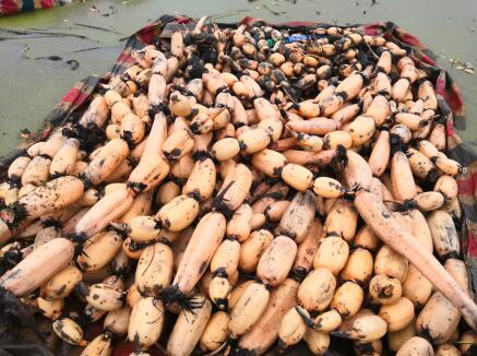 荆州,合作社农民挖藕,验收合格后从地头送到工厂