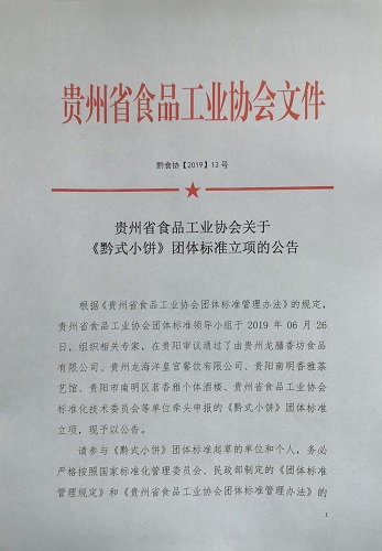 请参与《黔式小饼》团体标准起草的单位和个人,务必严格按照国家标准化管理委员会、民政部制定的《团体标准管理规定》和《贵州省食品工业协会团体标准管理办法》的要求,加强组织协调,达成行业内广泛认识,严把质量关,确保本标准的适用性和有效性,按期完成标准的编制工作。