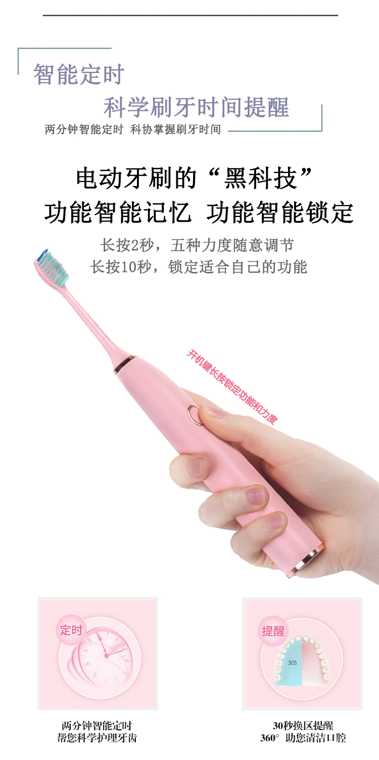 如果说手动牙刷就是靠感觉,那么这款SEEUDAY电动牙刷就是“全自动”。时间智能提醒,每30秒振动提示,提醒你左边刷完该刷右边咯!2分钟自动停止,防止刷牙时间过长造成牙釉质的损伤。