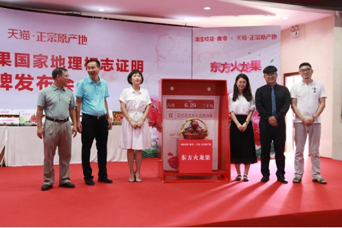 这不仅仅是基地的近乎全自动化的冷链技术,更是东方市农业农村局联手阿里巴巴一起努力的结果。29号下午,2019年东方火龙果国家地理标志证明商标品牌发布会在东方举行,省农业农村农村局相关领导、东方市相关领导、淘宝吃货.食令、天猫正宗原产地、东方市火龙果协会纷纷与会,东方火龙果品牌正式立下旗号,进军品牌市场。