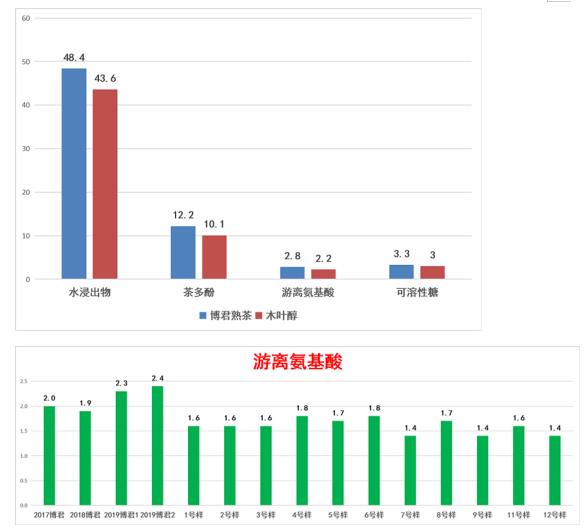 “博君熟茶较传统工艺熟茶发酵前后,水浸出物、茶多酚、游离氨基酸、咖啡碱等内含物质变化很小,博君熟茶游离氨基酸、没食子酸等均优于戎氏传统熟茶和市场熟茶……”这是农业农村部茶叶质量监督检验测试中心对博君熟茶与戎氏传统熟茶、市场熟茶进行理化指标对比分析得出的结论。