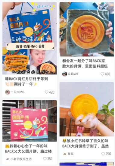 不同于传统广式莲蓉双蛋、海派鲜肉、苏式五仁,味BACK这款团圆大月饼源自闽南,凭借“比脸还大”、4层网红馅料、Q弹不油腻等产品特点,深受消费者好评,上线30天热卖1500万,成为2018年网红一哥;小红书相关产品笔记8000多篇,占小红书月饼总数的四分之一,远超美心......