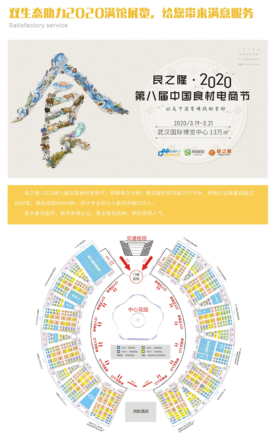 “中国食材电商节”在行业内以展会规模大、专业观众来源广、展品数量多、展品含金量高、签约意向多获得国内外众多品牌商家的普遍认可和赞誉。“良之隆·2020第八届中国食材电商节”定于2020年3月19日-3月21日在武汉国际博览中心隆重开展,招商招展工作正式全面启动。