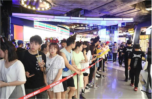 6月22日爱奇艺跨界茶饮——嘻饮力首店进驻广州最繁华的时尚天河商场,开业当天更是有内地说唱男歌手、《中国新说唱》全国总决赛六强王以太空降助场。上千名爱艺奇的粉丝和王以太的拥趸挤爆了“嘻饮力”90平米的门店。