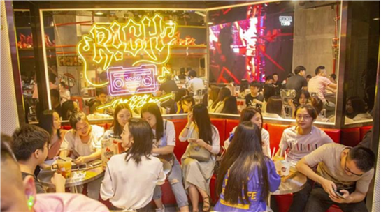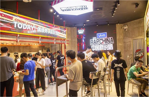 所以在门店视觉营造、体验设计等方面围绕IP主题进行装修,通过构建实体的HIP-POP趣玩空间,努力还原荧屏上的“新说唱”场景,从环境营造上吸引消费者。