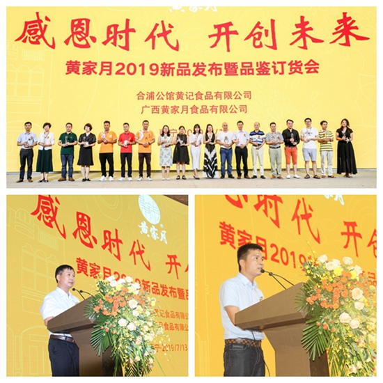 “黄家月”董事长黄庆强(下左一)、副总经理欧正胜(下右二)发表讲话