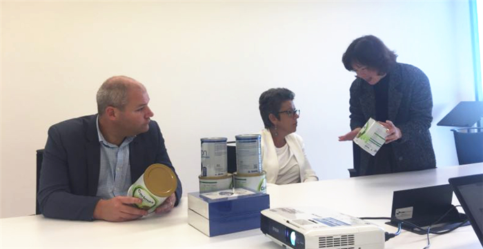 (新西兰前副总理Paula Bennett访问欢恩宝NZDC工厂,认真听取新产品的介绍)