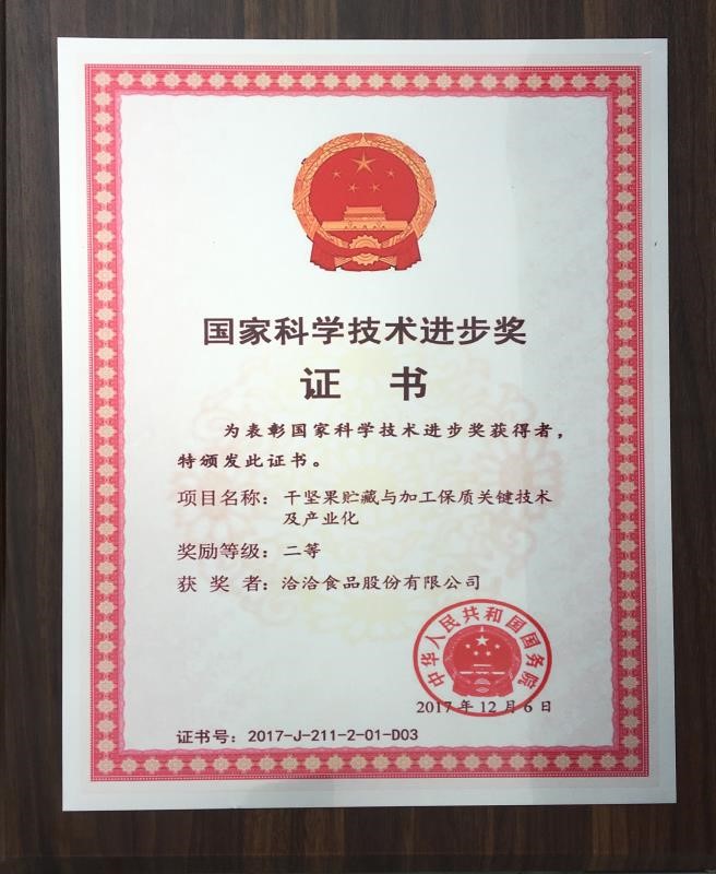 洽洽在过去的20年中,不断加强坚果基础科学研究。洽洽“干坚果贮藏与加工保质关键技术及产业化”项目不仅荣获国务院颁发的国家科学技术进步奖二等奖,凭借雄厚的研发实力,洽洽食品成功入选为国家农业部“国家干坚果加工技术研发中心”。此外,洽洽小黄袋每日坚果成为首家入选"国家健康品牌计划"的品牌,更是于近期实力征服米其林“最挑剔的舌头”荣获国际风味评鉴所颁发的“世界顶级美味大奖”。