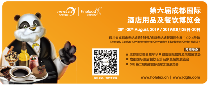 2019年8月28日-30日,第六届成都国际酒店用品及餐饮博览会(简称:2019 HOTELEX成都)将于成都世纪城新国际会展中心2-4号馆举行(四川省成都市世纪城路198号)拉开帷幕。展会由上海博华国际展览有限公司、四川省旅游饭店业协会、上海伊比逊会展有限公司主办,由世界中餐业联合会、四川省酒店用品行业协会、成都餐饮企业联合会联合主办。同期还将举办成都潮饮美食嘉年华、成都国际咖啡及烘焙展览会、成都国际酒店餐饮设计及家具装饰展览会、SFE第二届成都国际连锁加盟展览会。