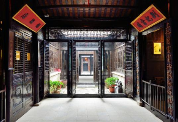刘同兴隆庄又叫做“刘记布庄”、“刘记米铺”,清末古西街的一家著名的商家,庄子主人叫刘锦堂,曾任三河商会副会长,兄弟五人。主要经营各种布匹和大米,他们每天对大米的销量达到上百吨,年收入数万银元。此外,还开有盐铺,瓷器店,当铺等,是古镇最有名气的商家之一。“同兴隆”是这个庄子的商号。整座刘同兴隆庄为五进八厢三十二间房屋。临街是一幢二层木楼,二进为走马转心楼,后三进都是平房。第三进是敞厅,用于接待来客;四进是香屋,用于祭祀祖先;五进是居住宿舍,建筑面积约有700平方米。刚进入刘同兴隆庄,就能看到大堂两侧,一边布米,一边布业,再往里面瞧,竟还有真实的蜡人提着酒壶还原着当年做生意的场景。继续向里面走,就能看到一个天井设计,在天井下面的地面上自成独特排水体系,寄寓着“肥水不流外人田”的经商理念。而二楼是主人家休息的地方,房屋采用中国传统的木结构与皖中地方建筑相结合,自成建筑体系,房屋结构具有皖中徽派建筑特色。