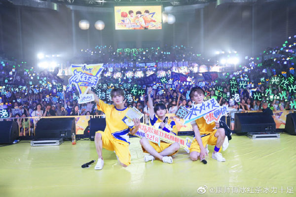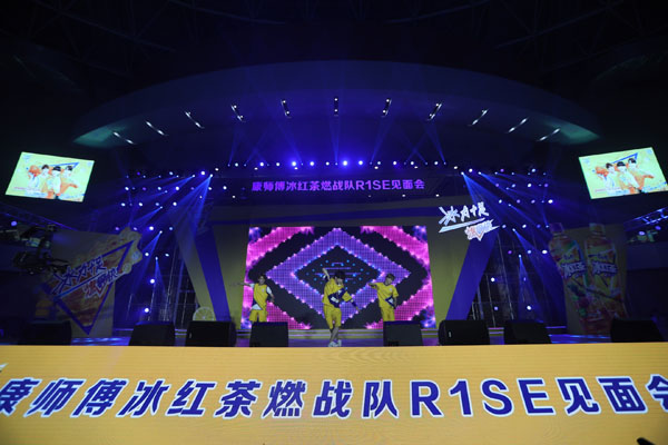 傍晚时分,康师傅冰红茶燃战队R1SE粉丝见面会正式拉开帷幕,炫酷的灯光秀动感十足,在简单的乐队暖场之后,R1SE周震南、夏之光、何洛洛集体出场,点燃了粉丝们的激情。三人以《创造营2019》的主题曲《喊出我的名字》开场,瞬间回忆满满,将现场气氛推至了高潮,引来了一阵阵尖叫。随后的表演也是火力全开,燃动全场。粉丝亲密互动游戏如你画我猜、踢毽子等燃力闯关也是欢乐不断,给粉丝们留下了美好的回忆。而粉丝们准备的应援告白视频、礼物,也让偶像们感动不已,三位小哥哥纷纷表达了对粉丝们一路支持的感谢。最后,活动在全场数千人欢乐的合影中圆满落幕。