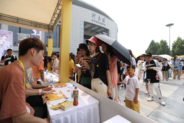 7月的郑州正值盛夏,平均气温在36度以上,但高温的天气并没有削减粉丝们的热情。他们早早就来到了现场排队签到,体验好玩的燃力投篮等互动游戏、拍照留影。随后,他们领取了高温福利康师傅冰红茶,等待着偶像们的到来。