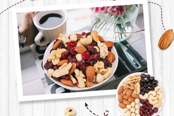 众所周知,坚果中含有大量的不饱和脂肪酸,而对于大脑的发育来说,需要的第一营养成分就是不饱和算,所以多吃坚果对于改善脑部营养很有益。臻味创新推出的天天坚果齐聚了四大类果仁和两大类果干,六种美味搭配,打开的不仅是美味,更是营养大全。时时刻刻为你提供满满的能量,守护在你的身边。