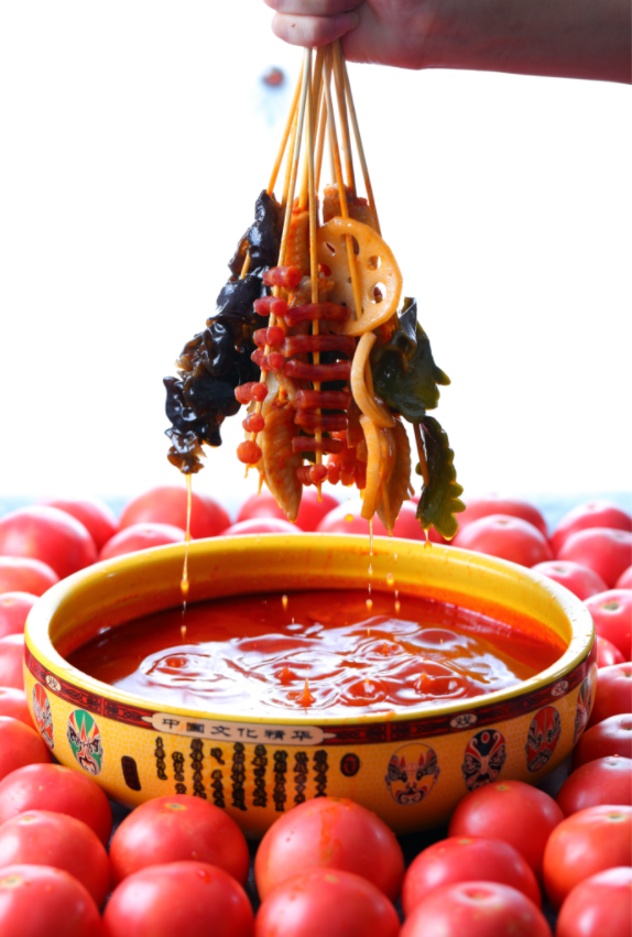 于是,春炉串串在其它餐饮业态发现,酸菜鱼店中的番茄鱼、火锅店中的番茄味锅底很受欢迎,那为什么不能做番茄味的串串呢?
