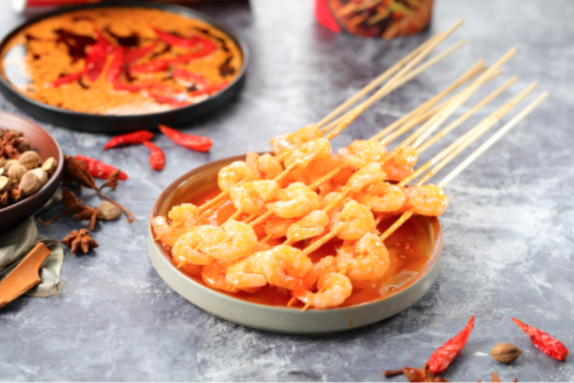 1) 切配好、穿好串、腌制好的食材被配送至门店;