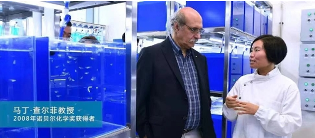 (诺贝尔奖获得者马丁查尔菲教授参观水中银实验室)