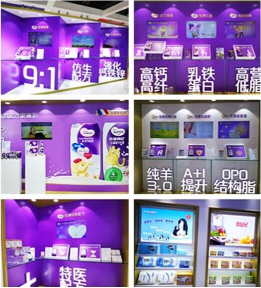 纵观优博展厅,整体色调以紫色为主,气质优雅舒适,引人前往。展厅醒目之处贴有“圣元”、“优博”等logo,及“9:1”、“特医配方”、“仿生配方”、“opo结构脂”、“乳铁蛋白”等产品优势字样,十分抓人眼球,许多观众纷纷拿起相机拍照。展厅内的优博产品及宣传物料,色调同样以大气的紫、白色为主,相得益彰。