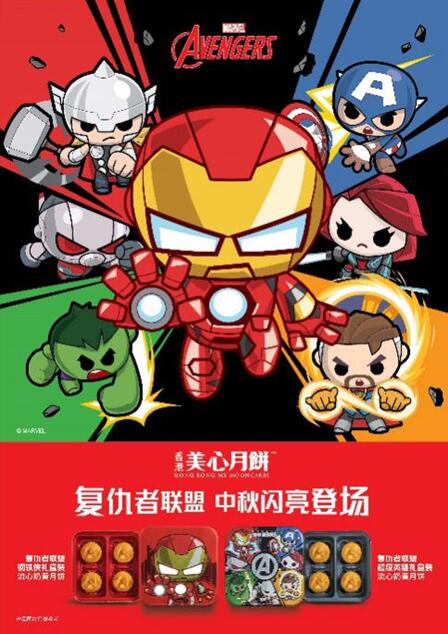 另一新产品是今年超级热门的“复仇者联盟”IP款。香港美心月饼(Hong Kong MX Mooncakes) 今年与Marvel 英雄们再度联手,精心打造两款复仇者联盟月饼礼盒。其中「复仇者联盟超级英雄礼盒装」集齐钢铁侠、美国队长、雷神、变型侠医、黑寡妇、奇异博士及蚁侠7大超级英雄, 以十分可爱的迷你形象呈现。 「复仇者联盟钢铁侠礼盒装」以Iron Man为设计主打元素,Iron Man的双眼、胸口和掌心都采用了发光技术。小编有理由相信,随着这两款月饼的风靡,誓必引发英雄热潮!