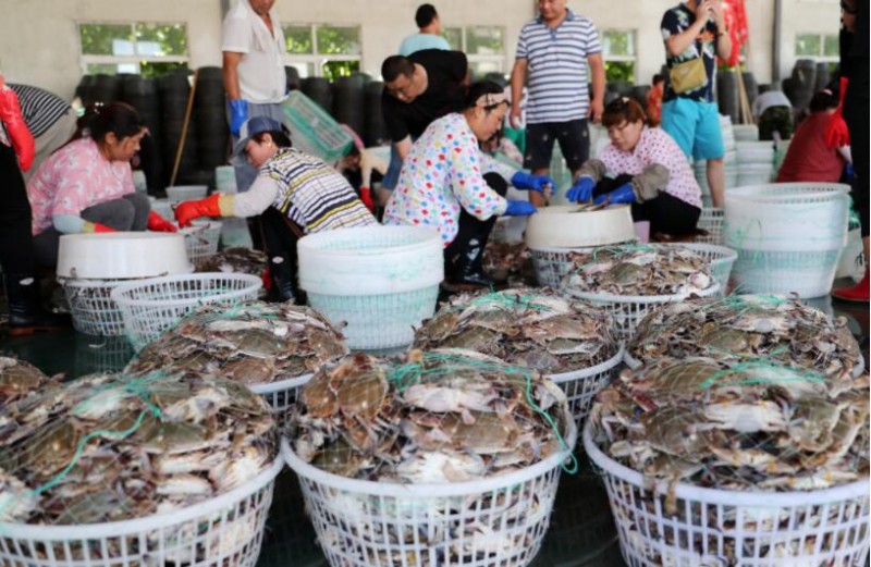 江苏连云港:伏季开捕归来梭子蟹上市