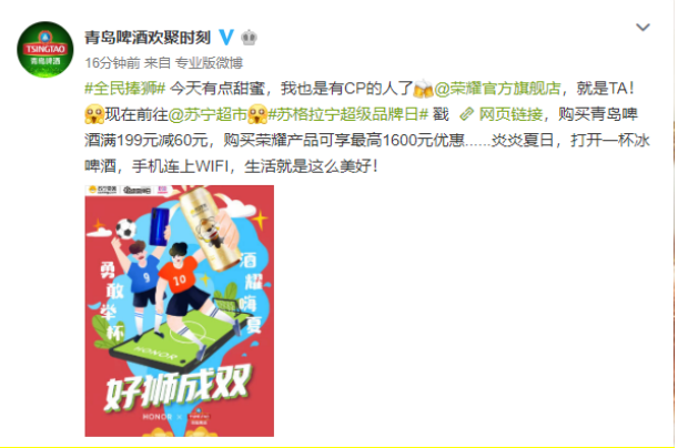 国米牵手茅台醇发布蓝黑系列酒后,苏宁又盯上了青岛。这次出面的是苏宁易购的吉祥物IP——小狮子苏格拉宁。