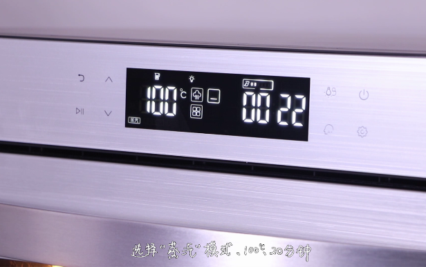 3、放入蒸烤箱中,选择“蒸汽”模式、100℃、20分钟。