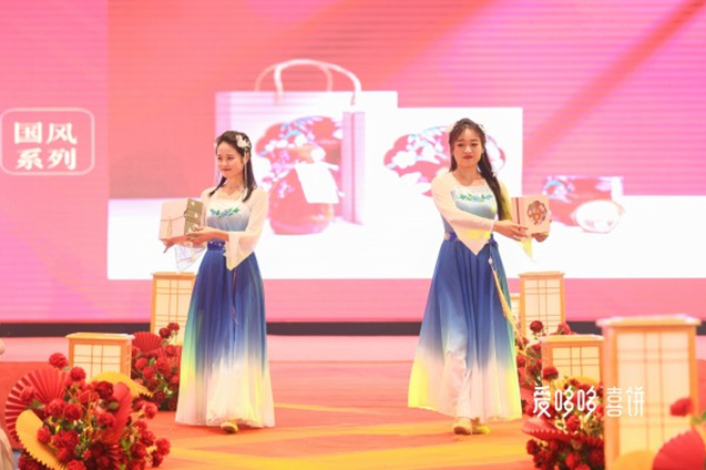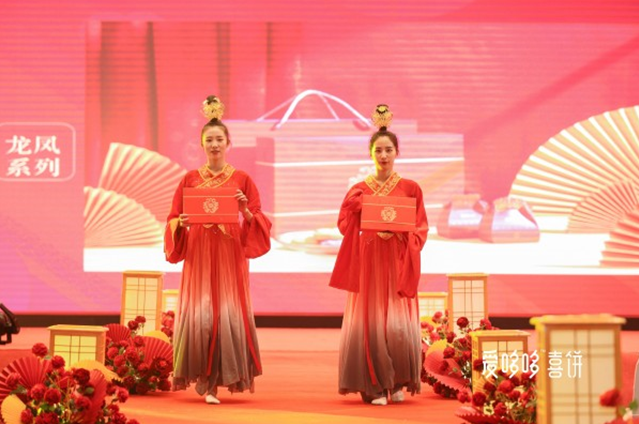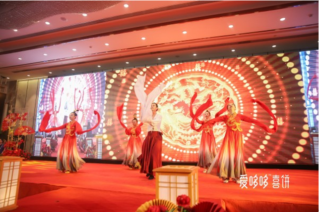 随着会议议题的推进,“东方喜事,中国喜饼”爱哆哆2019结婚喜饼发布会暨订货会终于揭开面纱,并一度将会场热情推向高潮。结婚喜饼发布会以中式国风唯美舞蹈开场,舞姿刚柔并济吊足胃口,新品亮相着重将国风和国韵、龙凤系列做了重要展示,现场掌声不断,赞誉连连,此次中式明星新品的创新研发开创了爱哆哆喜饼在结婚领域的新章程。