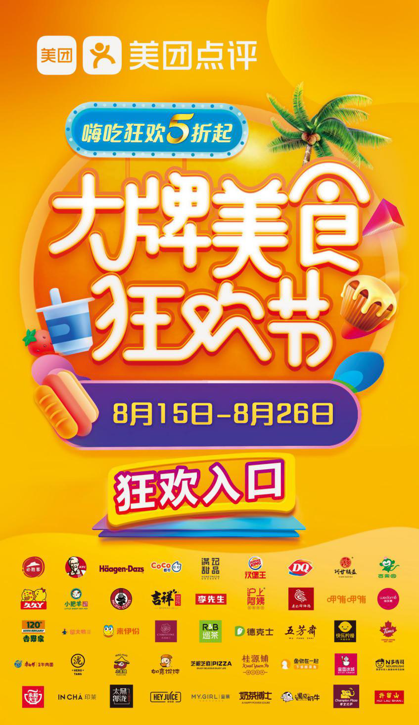 据了解,本次“大牌美食狂欢节”活动从8月15日开始,历时两周,消费者可以通过美团、大众点评APP的美食频道进入活动页面。