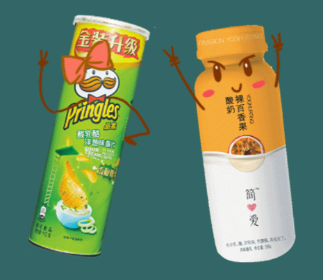 一对是品爱CP,分别是【品客薯片】和【简爱酸奶】组成,一个说一不二、态度干脆,一个简简单单,只管好喝。