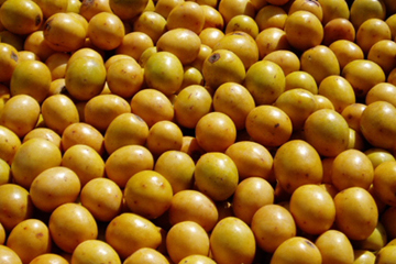深秋时节,当地的农户早早起床,翻山越岭来到大山深处,来寻找昨夜随风坠落的我们。我们中一颗颗金黄的南酸枣被精挑细选出来,通过清洗、去皮、去核,分离出20%左右的果肉,制作成自然果香、晶莹剔透的果浆,最后自然凝聚成一块块色如琥珀、吃起来酸甜韧滑的南酸枣糕。