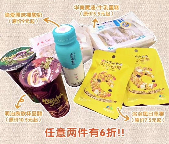 制作盆栽蛋糕的原材料是原价9元起的简爱原味裸酸奶、原价5.5元起的华美黄油/牛乳蛋糕、原价10.5元起的明治欣欣杯品醇和原价7.5元起的恰恰每日坚果。参与了两两配对的活动后,6折只需要19.5元,价格不要太省了!