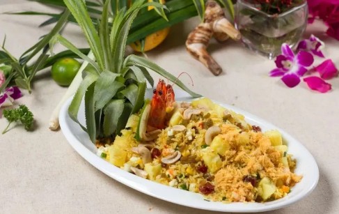 无泰式不夏日,泰式料理是夏日的灵魂伴侣。菠萝海鲜炒饭、咖喱皇炒蟹膏和椰汁西米糕都是鼎龙湾·萨瓦迪卡泰国餐厅的特色菜。菠萝海鲜炒饭中有醇香的泰国香米、香甜的菠萝粒,以及各种鲜美的海鲜,颜色呈金黄色,吃起来口感香甜,令人回味无穷;咖喱皇炒蟹膏采用多种天然植物香料、泰国椰浆、三花奶和蟹膏制作而成,口感浓郁、香滑,味道鲜美;椰汁西米糕由西米、玉米粒、香芋、椰汁制作而成,入口清凉,椰香四溢。