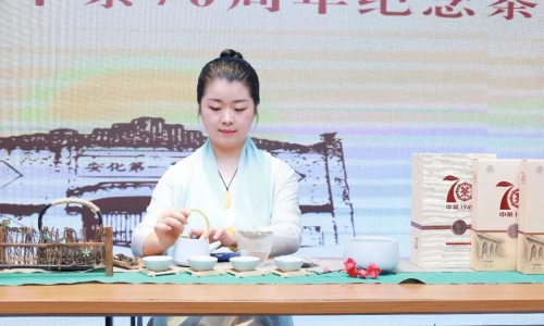 中茶70周年纪念茶手筑茯砖茶是安化第一茶厂匠人精益求精,不断求精、创新,打造的一款非凡佳茗。公司高级茶艺师范玉萍现场专业冲泡70周年纪念手筑茯砖茶,展示其魅力。现场茶友品鉴自己泡的茶,对70周年纪念手筑茯砖茶的滋味赞不绝口,现场气氛活跃,反响良好。