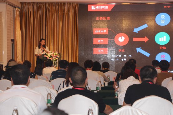 卓创资讯作为大宗商品市场专业资讯机构,专注于提供大宗商品市场及时、准确的价格行情和深度分析、预测。其专业分析能力在业内有目共睹。本次论坛上,卓创资讯的高级分析师张莉莉做了:“猪肉供应缺口扩大,未来肉类行情展望”的专业分析,分别从:畜牧行业研究框架、国内肉类行业消费结构现状、国内猪肉市场快速上涨、替代品肉类行情分析、未来肉类市场趋势预测以上五大方面对未来中国肉类行情展望。张莉莉以专业知识为基础,以行业特点为依托,以行业数据为依据,深入浅出的讲解了接下来肉类行情的走向。专业的分析内容让所有参会人员收获颇丰,在场与会人员也对卓创资讯的专业度表示出了极大的认可。