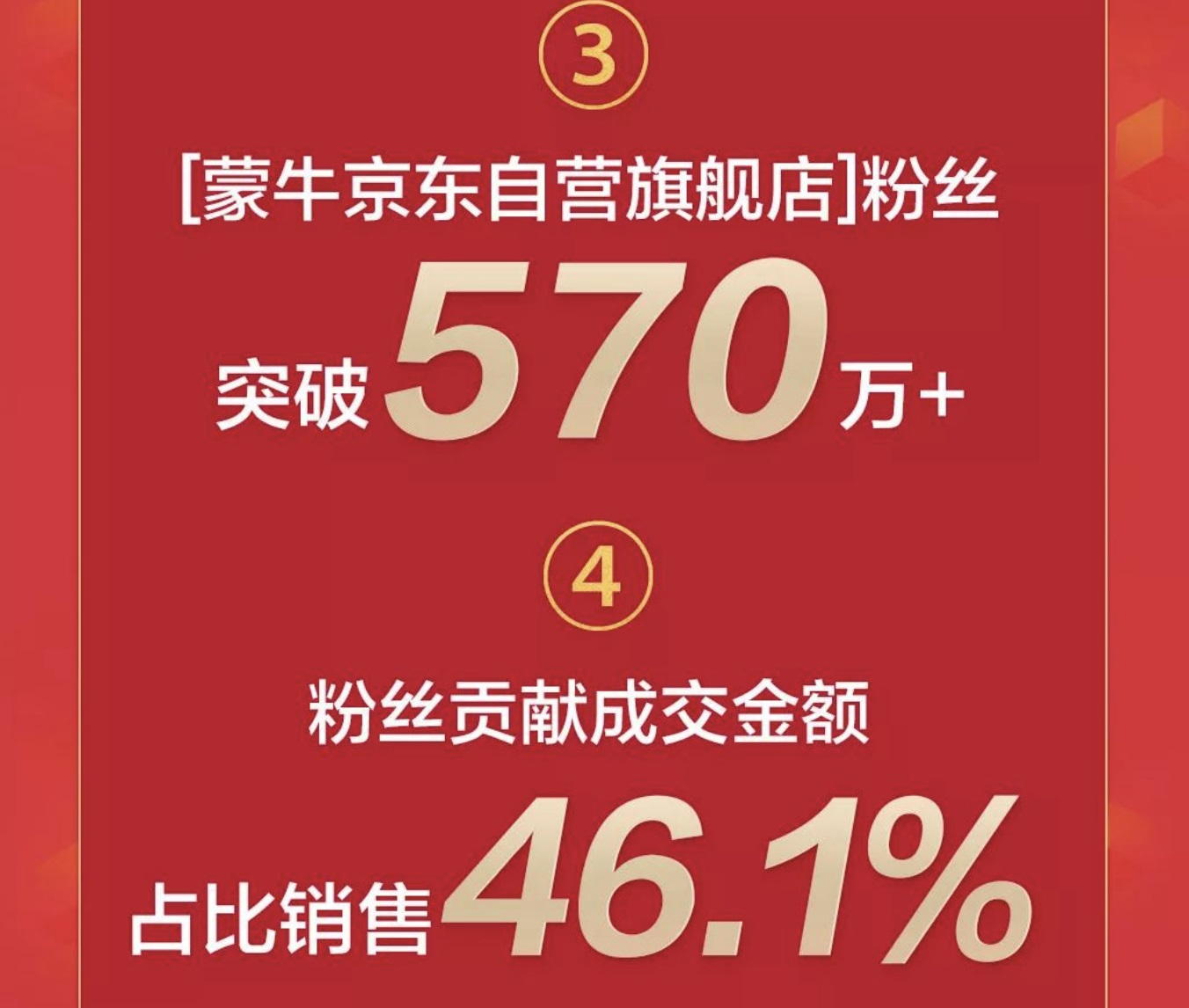 8月27日,蒙牛京东超级品牌日落下帷幕,活动当日销售环比8月日销增长1000%。在这一销售成绩的背后,有一组数据值得关注:蒙牛京东自营旗舰店粉丝突破570万,粉丝贡献了成交总额的46.1%!换句话说,粉丝的力量撑起此次蒙牛京东超级品牌日的半边天。
