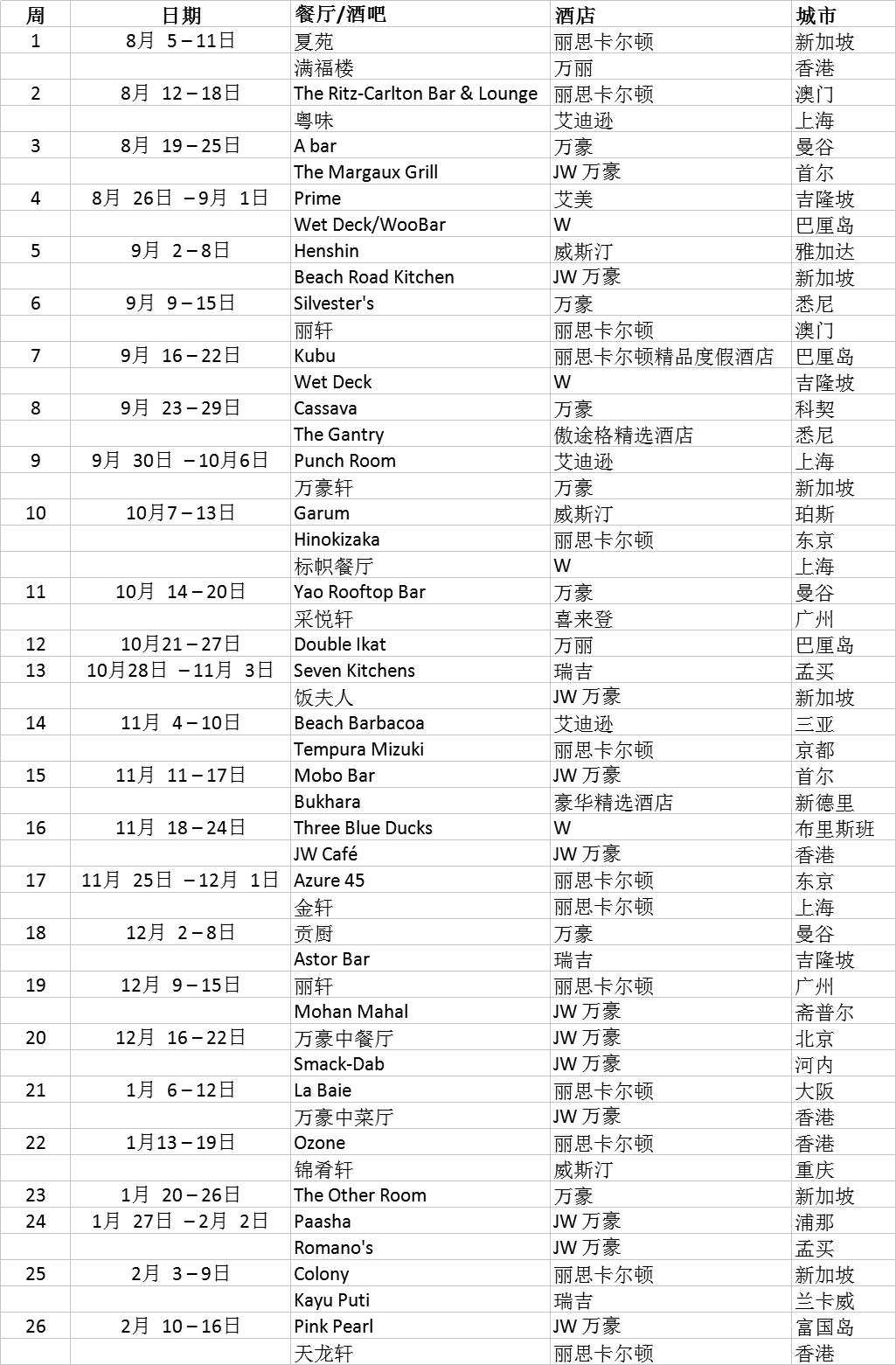 附件 – 万豪旅享家2019 Top 52餐厅及酒吧