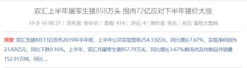 例如:双汇这样的大型肉类供应企业,也在早早的实施“囤肉”策略:双汇上半年屠宰生猪858万头 囤肉72亿应对下半年猪价大涨。2季度双汇生猪屠宰量同环比均出现明显下降,同时鲜冻肉销量也下降明显,但同期期货库存大幅上升。