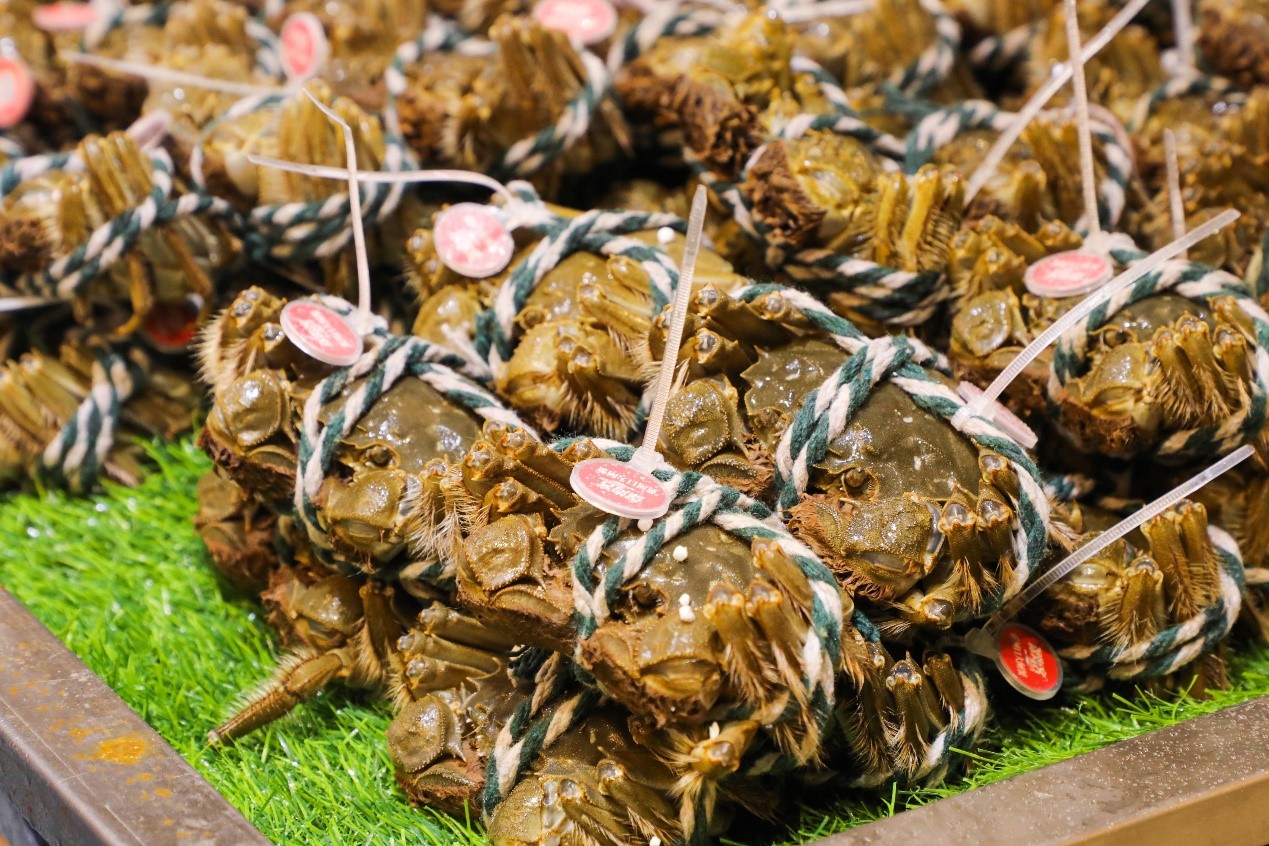 开业仅3分钟,首单水产订单产生,爆受欢迎的梭子蟹以超高的性价比,率先拉开了现场热购浪潮。10点55分,开业不到1小时,美食加工区已经传来阵阵蟹香,4只香喷喷的梭子蟹被送上了餐桌,满足了热情消费者的口腹之欲。