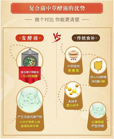 利用复合益生菌共生发酵植物萃取物培养技术,使得药食同源植物源材料活性成分与益生菌代谢活性产物相辅相成的作用。而在复合菌生长过程中,会不断分泌的生物酶,可以将这些包含有效“官能团”的生物大分子,酶切、降解为小分子物质,更高效的被人体吸收,利用率更高,效果显现的更迅速。