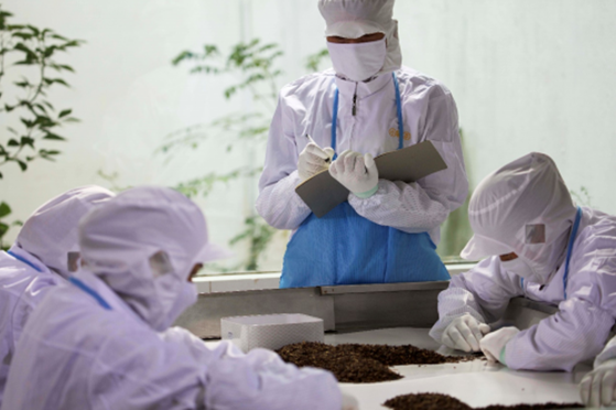 小罐茶对茶叶品质有着严格标准,除了在原料上精挑细选之外,在加工环节也有着苛刻的要求。在小罐茶黄山工厂,常年有60名以上的茶叶挑拣员工负责对茶叶进行手工拣选。一般来说绿茶需要人工挑2-3遍,普洱这种颜色偏深的茶叶甚至需要挑5-7遍,不仅耗时耗力,且成本巨大。