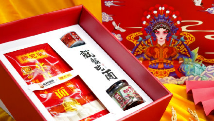本次推出的辣品潮面限量礼盒产品,在外观设计上以中国红为底色,以手绘的刀马旦图案为主,辅以仙鹤祥云,将舞台上的戏剧用色和纹饰运用在包装盒上,使产品外观在传统元素基础上融入现代审美的新鲜血液,古典之中蕴含极具活力的另一面,这也折射出陈克明面条这一传统品牌对创新活力的追求。