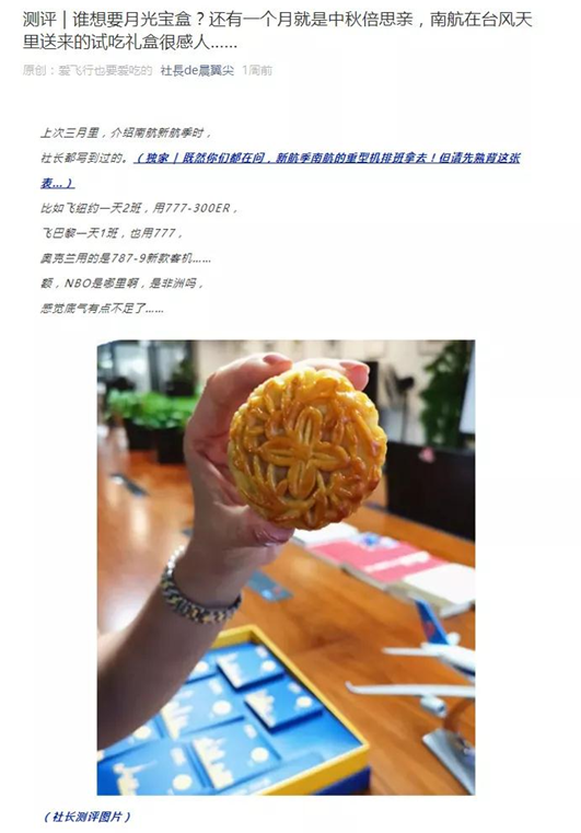 说到月饼的测评,自然少不了“识饮识食”的广东人!潮生活是广州本地的美食达人大号,本次特意为南航空厨最新推出的月饼助力,文章超详尽地介绍了这三款月饼的包装、口味与特点,简直让嘴刁的你一秒种草!