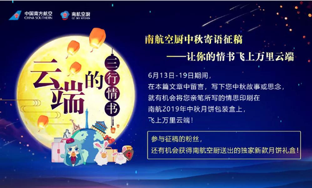 为了真情服务旅客,南航空厨更是在中国南方航空公众号上面向广大南航粉丝征集中秋寄语,写下专属“云端情书”。