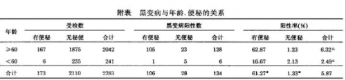 结肠黑变者在经常便秘、老便秘患者发生率较高,57.7%的结肠黑变者被诊断为慢性便秘,而这些便秘患者中有36.6%并无服用泻药的历史。【7】