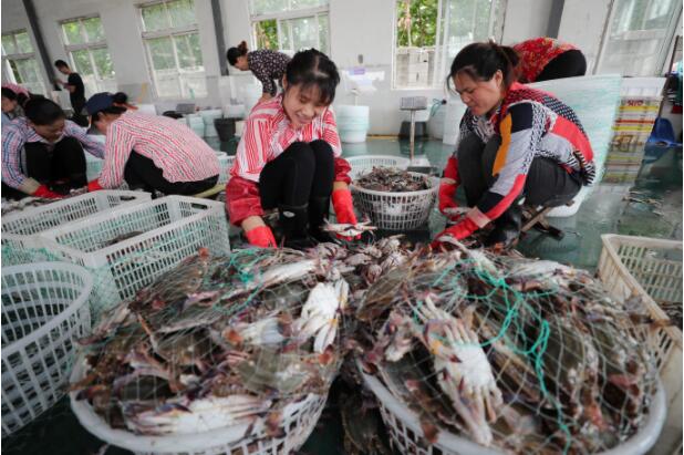 近日,江苏省连云港市海州湾渔场秋捕梭子蟹喜获丰收,梭子蟹日到港量50多万公斤,当地渔民加紧捕捞和分拣,及时装车外运,满足中秋、国庆节日市场需求。